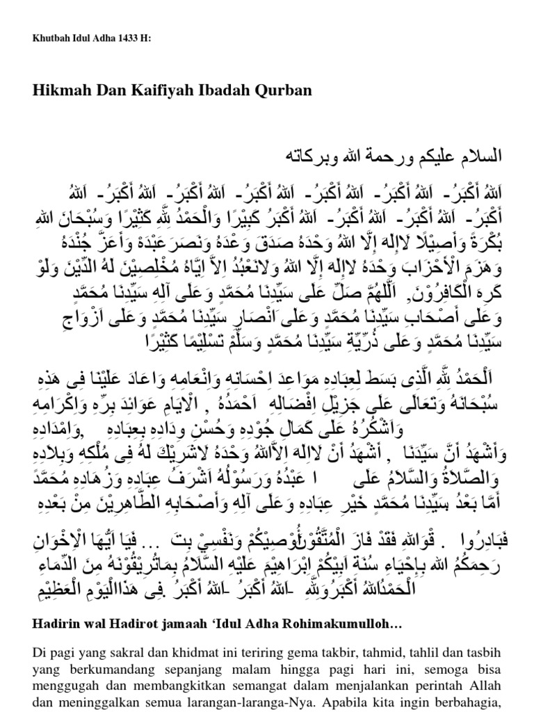 Syamsulbahrisaid 5 agustus 2019 20.28. Full teks khutbah idul adha 2019: Download gratis khutbah idul adha 2019. Sholat ied idul adha dan idul fitri memiliki hukum sunnah yang di anjurkan untuk di kerjakan oleh setiap umat muslim, namun keduanya memiliki perbedaan di banding dengan sholat sunnah pada umumnya yaitu adanya dua khutbah. File terdiri dua bentuk, booklet (siap cetak dan dilipat dalam bentuk buku). Bagaimana dengan tema yang diajukan dalam khutbah idul adha? Di kampus pondok modern darussalam gontor. Khutbah idul adha dilakukan sebelum sholat pada hari raya tersebut. Hikmah dari sejarah dan prosesinya1. Dari ibadah qurban yang dituntut adalah keikhlasan dan ketakwaan, itulah yang dapat menggapai ridha allah. Dan hanya allah swt yang tetap maha agung dan maha hebat selamanya. Yang mana dalam pembahasan kali ini di rangkai dalam bentuk khutbah … Akhir dari khutbah ini, secara.