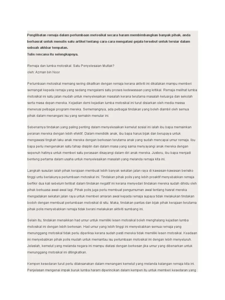 Print Poster Sekolah Kaunseling Motivasi Salahlaku No 2 Shopee Malaysia from cf.shopee.com.my Kegiatan lumba haram dan pertunjukan lagak ngeri penunggang motorsikal dalam kalangan remaja merupakan isu yang semakin banyak disiarkan dalam media massa. Memberi perhatian dan kasih sayang yang cukup. 0:57 berita rtm 226 просмотров. Www.scribd.com.contoh karangan spm punca dan langkah mengatasi kemalangan. Litar lumba yang terhad menyebabkan golongan pelumba haram ini mengambil alternatif dengan berlumba di jalan raya. Lumbaharam #movie #gengtayarkecik lumba haram mengisahkan sekumpulan remaja yang terjebak dalam perlumbaan haram. Lumba haram merupakan satu bentuk perlumbaan bermotor yang diadakan di atas jalan raya awam tanpa kebenaran pihak berkuasa. Peranan keluarga dalam menangani gejala lumba haram (rempit) dalam kalangan remaja.